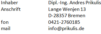Der Autor übernimmt keinerlei Gewähr für die Aktualität, Korrektheit, Vollständigkeit oder Qualität der bereitgestellten Informationen. Haftungsansprüche gegen den Autor, welche sich auf Schäden materieller oder ideeller Art beziehen, die durch die Nutzung oder Nichtnutzung der dargebotenen Informationen bzw. durch die Nutzung fehlerhafter und unvollständiger Informationen verursacht wurden, sind grundsätzlich ausgeschlossen, sofern seitens des Autors kein nachweislich vorsätzliches oder grob fahrlässiges Verschulden vorliegt. Alle Angebote sind freibleibend und unverbindlich. Der Autor behält es sich ausdrücklich vor, Teile der Seiten oder das gesamte Angebot ohne gesonderte Ankündigung zu verändern, zu ergänzen, zu löschen oder die Veröffentlichung zeitweise oder endgültig einzustellen.
